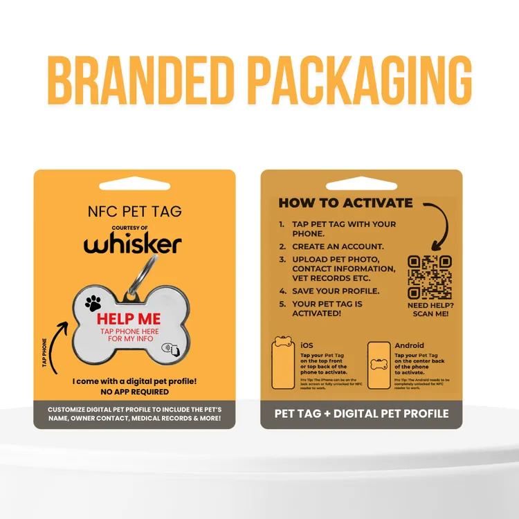 NFC-enabled dog tags powered by ShareTag™ provide instant access to a customizable pet profile: