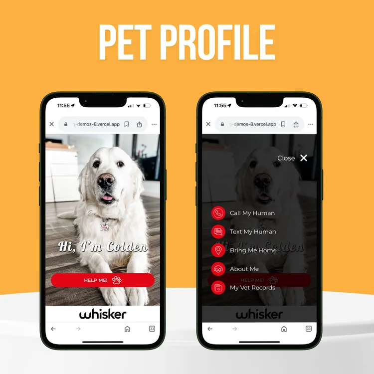 When you tap the pet tag with your phone (just like you would with a tap-to-pay feature), a link instantly appears. This link takes you directly to the pet profile where you can access the pet's profile with their owner's contact information, home address, medical records and more