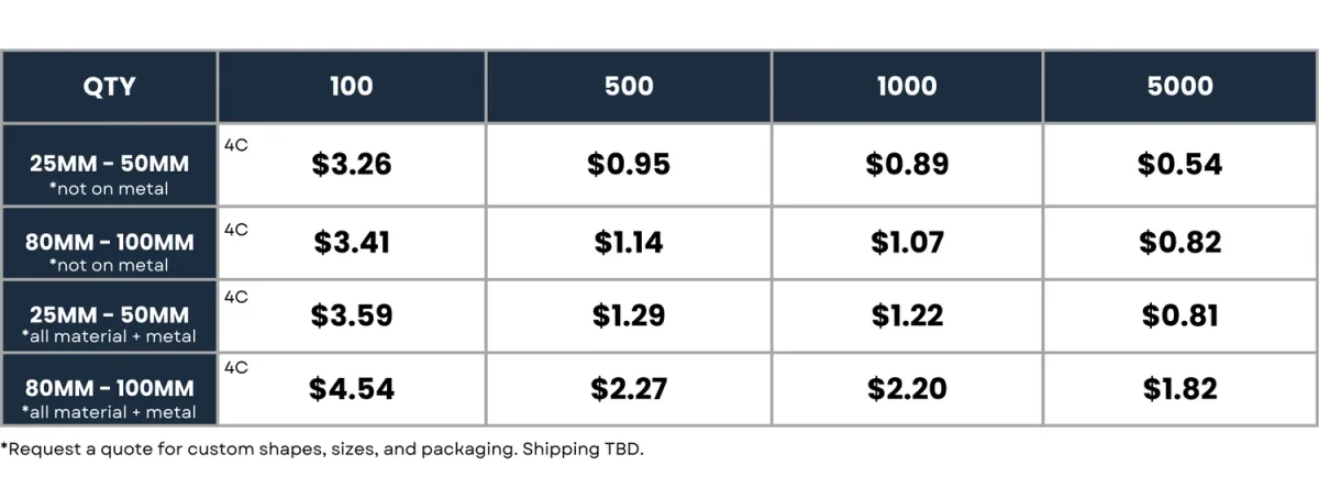 Printing on the back of the sticker for an additional fee
